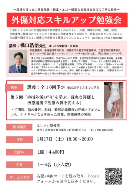 次回、1月17日(土)に「外傷対応スキルアップ」勉強会の第6回を開催予定です!!