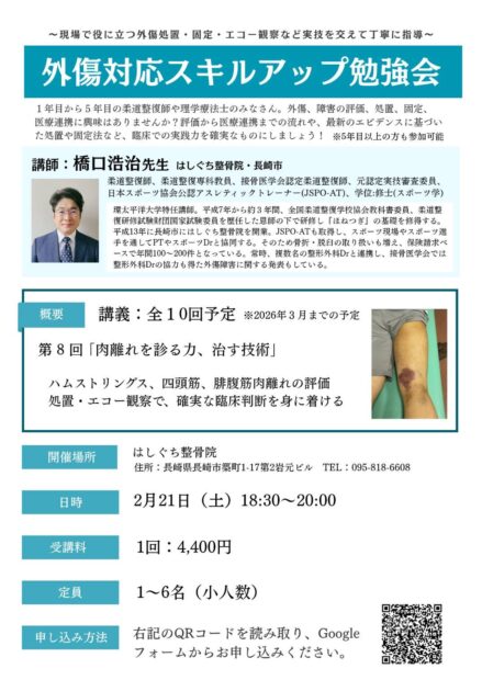 はしぐち整骨院では、このようにR7、11月~R8、3月の毎月第2・3土曜日に勉強会を開催しています!