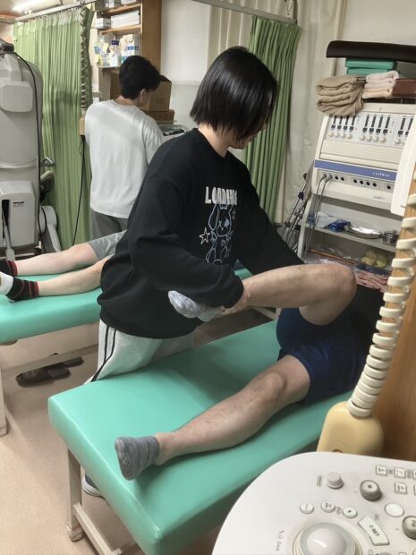 最後に、参加者同士で大腿部の肉離れ、打撲の診察、