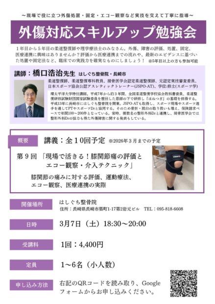 はしぐち整骨院では、このようにR7、11月~R8、3月の毎月第2・3土曜日に勉強会を開催しています!