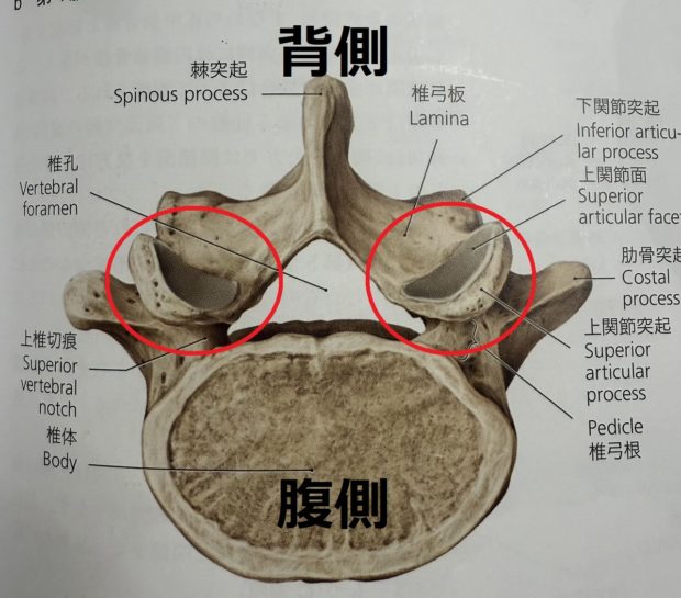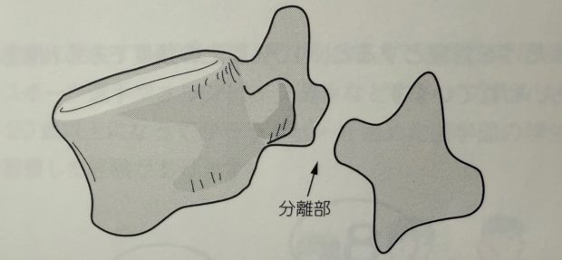 これは、分離症が生じたときの腰椎を横から見た画像になります。