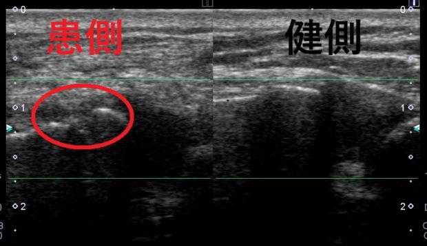 エコー画像で観察したものでは、赤丸で囲った部分の