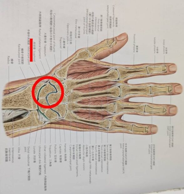 バスケットボール中に転倒し、手をついた際に手首を痛めたケースです![]()