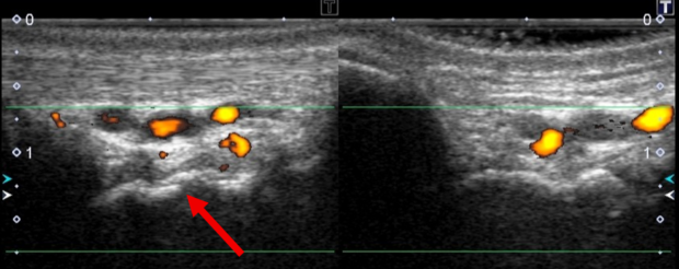 患側の血流増加(炎症反応)も確認されました。